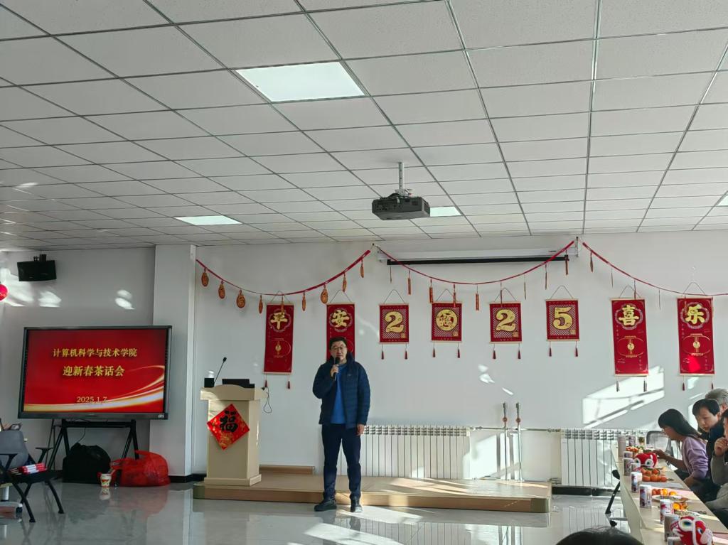 祥龙摆尾辞旧岁,金蛇纳福迎春来!202517日,黑料网 在软件大楼527举办了“智汇新春,码绘锦程”2025年迎新春教职工茶话会。茶话会邀请了校党委常委、副校长刘俊以及学院毕业的职能部门老师、学院全体教职工共80余人参加。