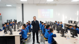 、机器视觉与虚拟现实山西省重点实验室,开启了一场沉浸式科技研学之旅。学院党委书记喻华兵、副院长梁志剑出席活动,喻书记现场寄语:“青少年是科技创新的未来力量,希望以实验室开放为契机,为孩子们心中播撒科学探索的种子。”附校带队老师补充道,此次研学是学校“探秘AI,智启未来”系列活动的首站,未来将持续深化校际合作,搭建更多实践成长平台。活动现场,李潞洋老师与张鑫博士还与学生们分享了人工智能领域的前沿应用案例。