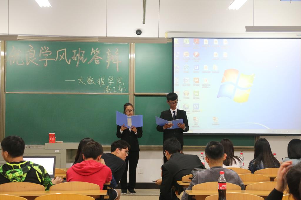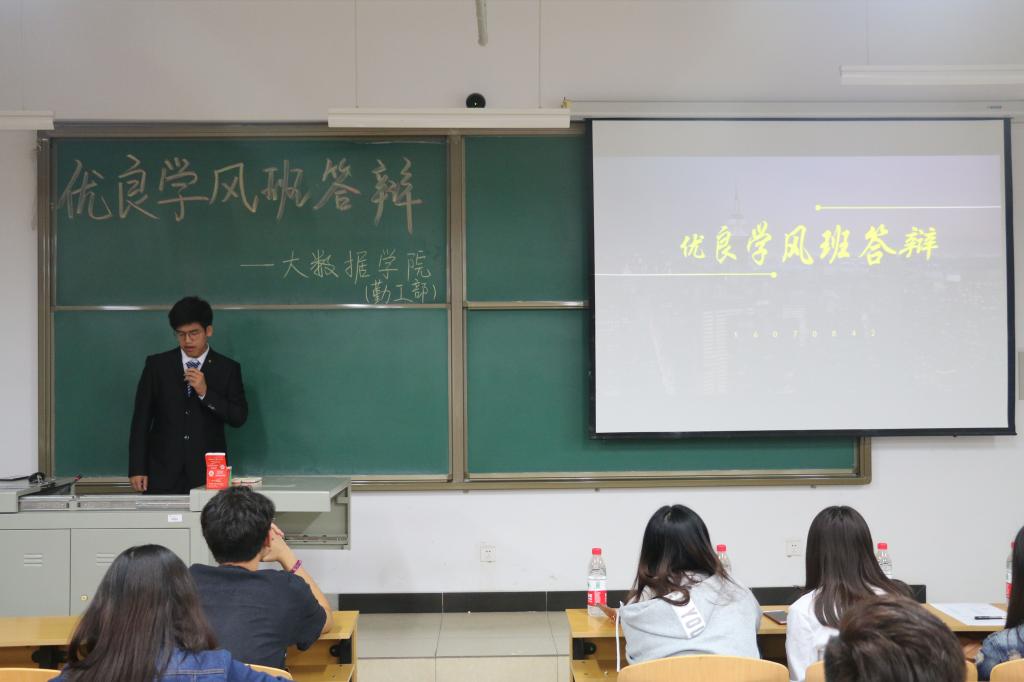 晚上8时整,答辩正式开始。经过筛选本次答辩共有11个班级入围,各班代表以ppt形式就其班级的学习成绩、思想建设、管理制度及获奖状况等方面介绍班级情况。班级代表们以其流利的语言和独特的魅力向大家展现了其班级在上一学年所取得的进步和荣誉,为大家展现了其班级独特的风采,也让人们看到了其班级的竞选优势,获得了评选人员的一致好评,现场气氛热烈,掌声不断。代表们发言结束后,主持人对此次答辩进行总结,宣布答辩大会圆满结束。