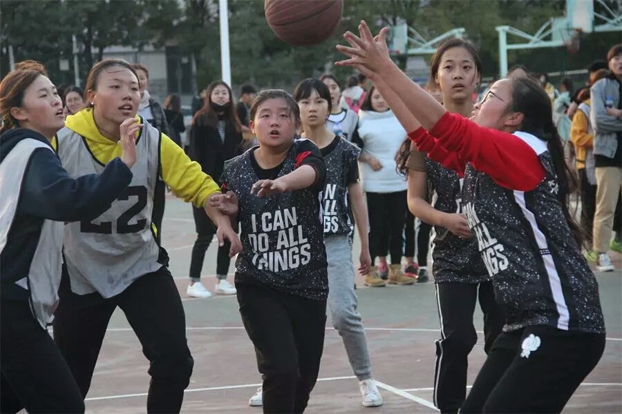 与体育学院的女篮在东区篮球场展开了激烈的比赛。