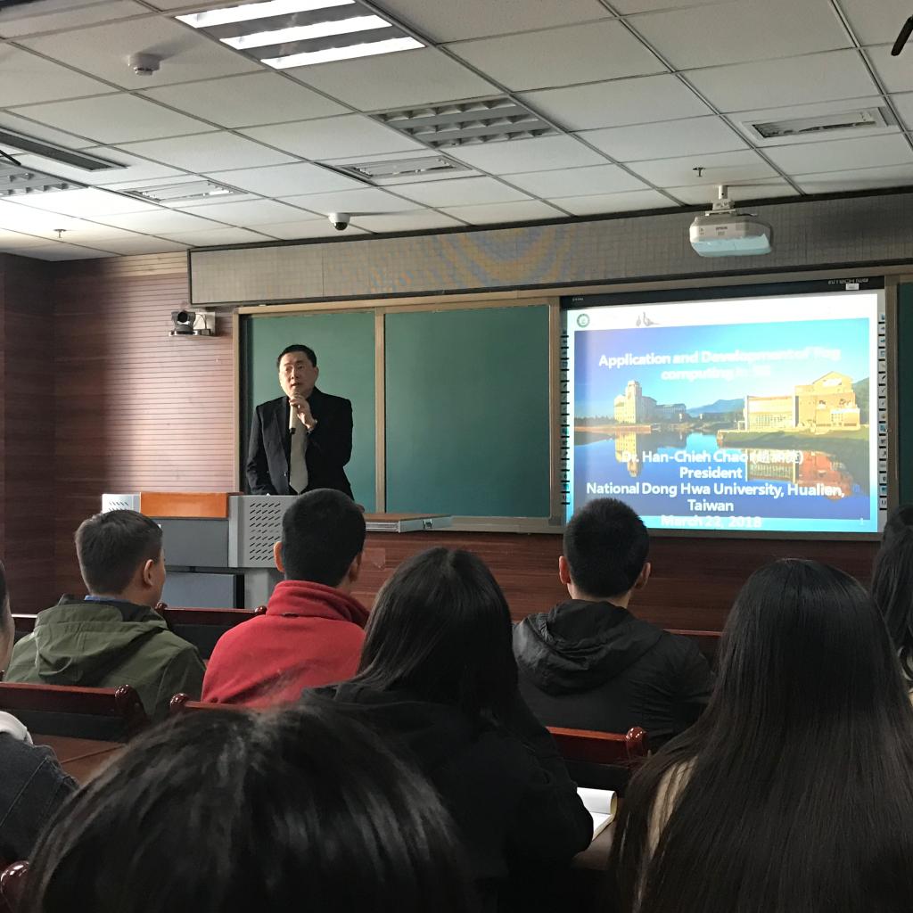 邀请到台湾国立东华大学赵涵捷校长,校务顾问,美国Confederal Networks 公司董事长赖小荣教授在主楼815会议室做学术交流讲座。