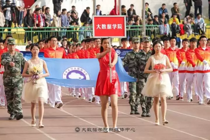 运动会开始之前,各个学院运动员的代表按顺序入场,每个方阵都身着统一靓丽的服装,精神焕发地踏着整齐的步伐迈入比赛场地。