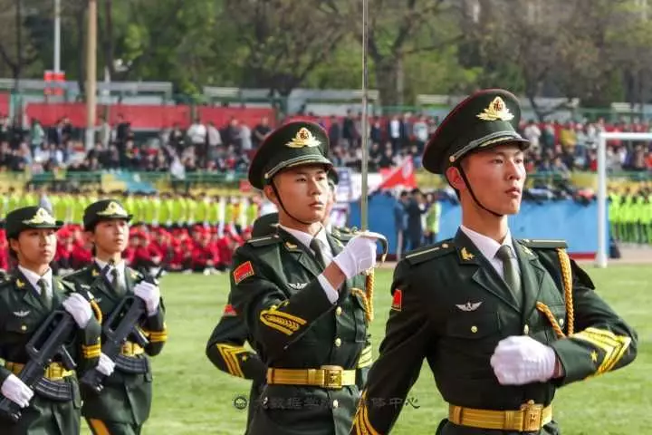 在裁判员、运动员入场后,庄严肃穆的升旗仪式开始了。国旗护卫队的同学们永远是最靓丽的一道风景线,他们吸引了无数同学的目光和镜头。