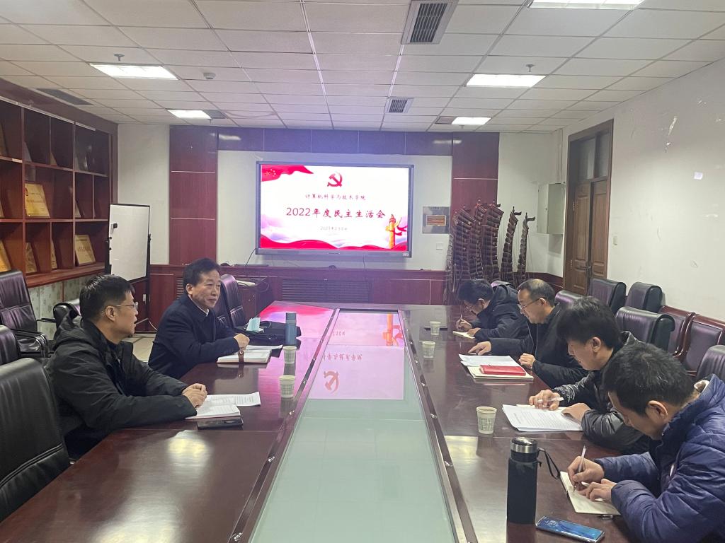 根据校党委《关于开好2022年度党员领导干部民主生活会的通知》相关要求,计算机科学与技术学院党委于2月8日在主楼919召开民主生活会,校党委副书记雷锋斌、校纪委委员杨风暴出席并进行指导,院领导班子成员参加会议,院党委书记喻华兵主持会议。