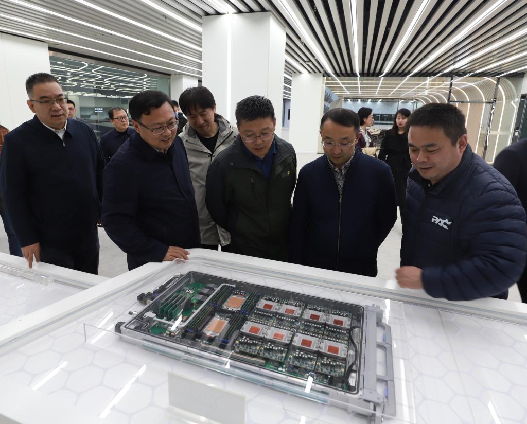 党委书记喻华兵、院长张云泉、党委副书记杨晓东、副院长秦品乐与北京中科寒武纪科技有限公司、北京东方超算科技有限公司和山西天尺空间信息科技有限公司有关负责人一行,到访山西云时代有限公司。
