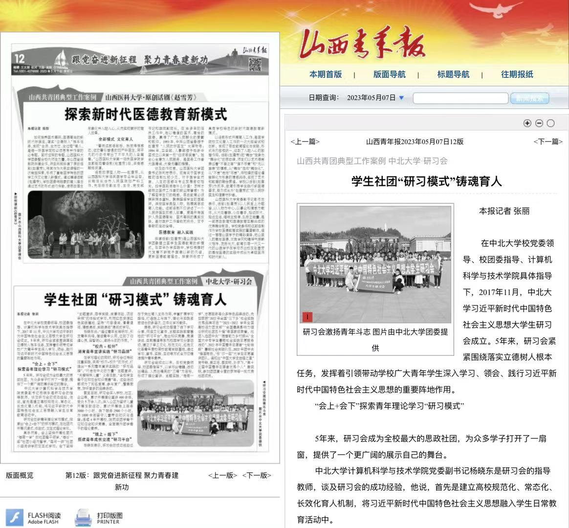 习近平新时代中国特色社会主义思想大学生研习会作为山西共青团典型工作案例荣登山西青年报12版。