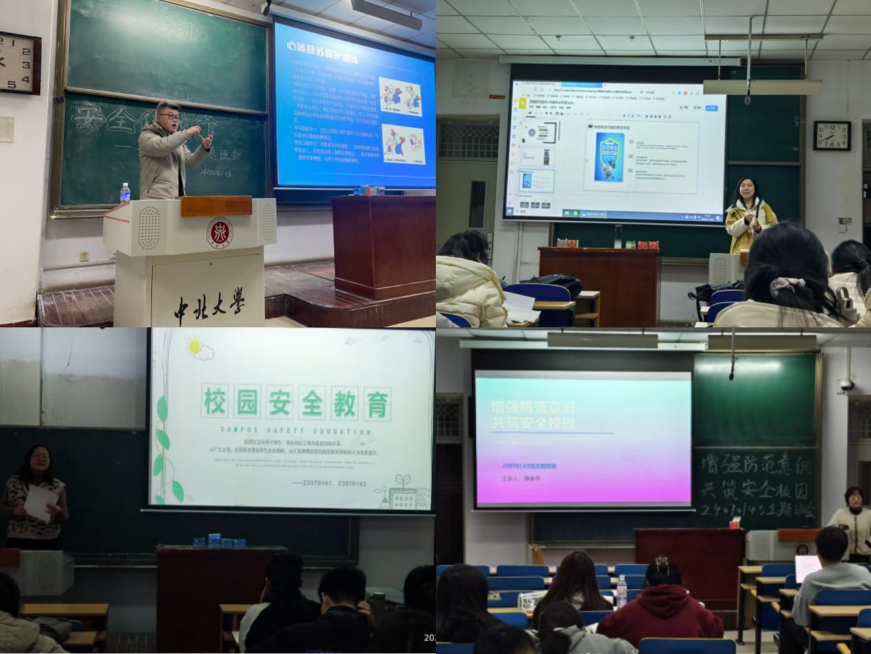 组织了以“增强防范意识 共建安全校园”为主题的系列班会。各班级通过讨论、知识竞赛、案例分析等形式,深入探讨了校园安全的重要性。班会不仅覆盖了消防安全、网络安全、人身安全、财产安全等传统领域,还特别强调了心理健康和实验室安全。通过主题班会,学生们对安全知识有了更全面的认识,也为后续的安全教育活动打下了坚实的基础。