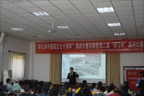 习近平新时代中国特色社会主义思想大学生研习会举办的“献礼新中国成立七十周年”演讲大赛总决赛暨第二届“研习杯”演讲比赛在科艺苑拉开帷幕。大赛邀请了黑料网