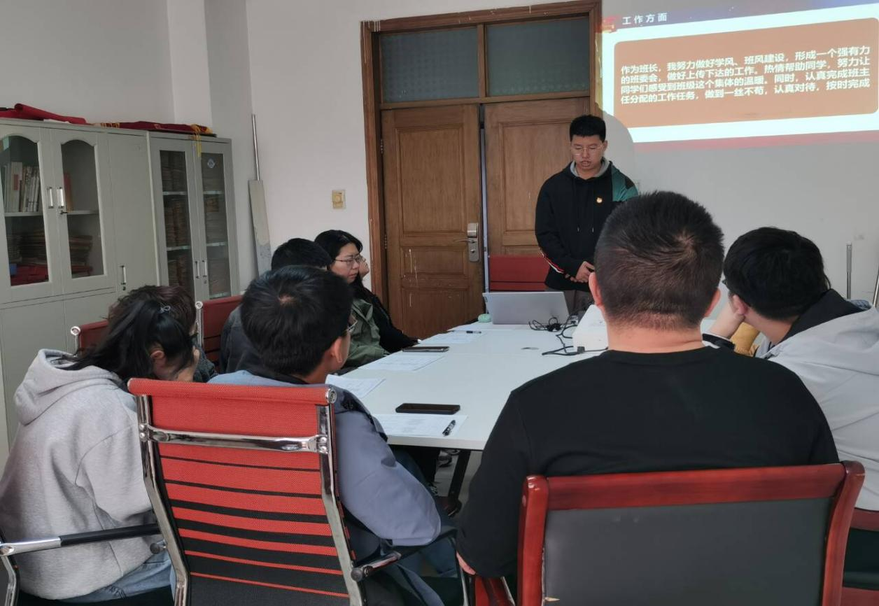 答辩开始后,答辩人员按照抽签顺序通过PPT依次进行答辩。首先进行答辩的是校级优秀共青团员标兵,句亚莉、白云凤、彭瑞、刘耀栋、陈玥、任铭铭6位同学分别展示自己。