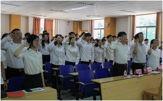 梁志剑老师带领所有党员,面向党旗,高举右拳,新发展党员入党宣誓,正式党员重温入党誓词。入党誓词声声铿锵、字字坚定,再次唤起每一位党员的责任意识。广大青年党员应牢筑信仰之基,在伟大的复兴道路上,砥砺前行,在实现中国梦的伟大征程中,打造出属于我们的新时代青春辉煌。