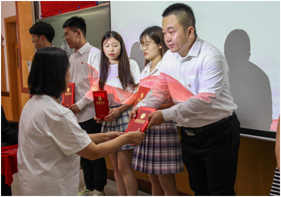 随后,院党委副书记杨晓东宣读2020-2021学年第二学期第二批发展党员名单。在热烈的掌声中,院党委书记郭书杰为预备党员发放党徽。