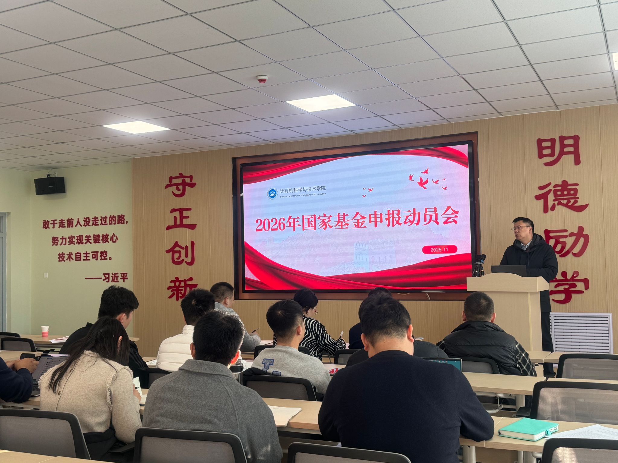 为积极部署2026年度国家自然科学基金项目的申报工作,营造浓厚的科研氛围,全面提升项目申报质量与立项率,学院于2025年11月25上午软件实验大楼召开2026年度国家基金项目申报动员大会。会议由秦品乐院长主持,并邀请科学技术研究院院长丑修建教授参加,学院全体中青年科研骨干教师参加了会议。