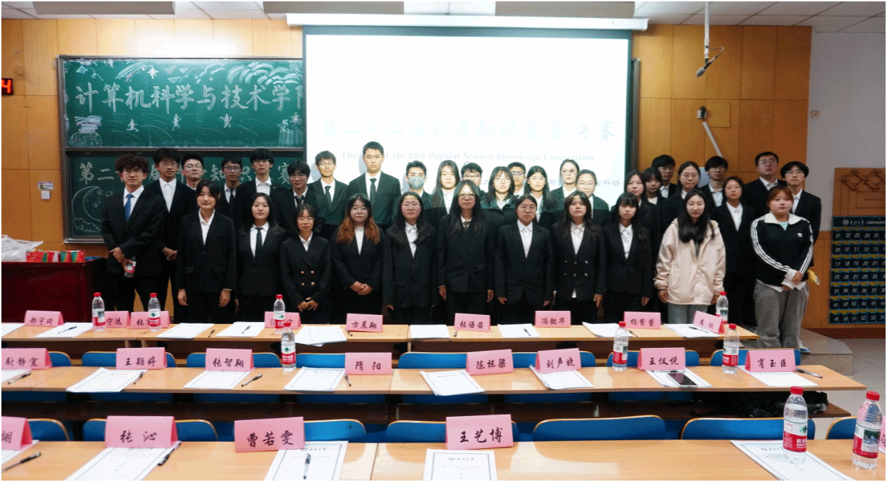 分科协精心打造的第二十二届科普知识竞赛决赛在11208教室盛大启幕。此次决赛邀请了各院分科协主席及计算机学院主席团成员。本次赛事自启动以来便受到全院学生的广泛关注,经线上初赛的层层筛选,“答案看了都认队”“你说的都队”“OO说的都队”“成群结队”“豆包看了都说队” 5 支精英队伍成功晋级决赛,在知识的舞台上展开巅峰对决。