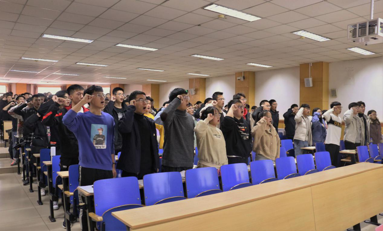 学员代表乔哲瑞同学发言,热情洋溢的青春誓言,充分彰显代表了当代青年大学生的责任与担当。开班典礼最后,院团委副书记张艳同学领誓,所有参训人员面对团旗庄严宣誓。