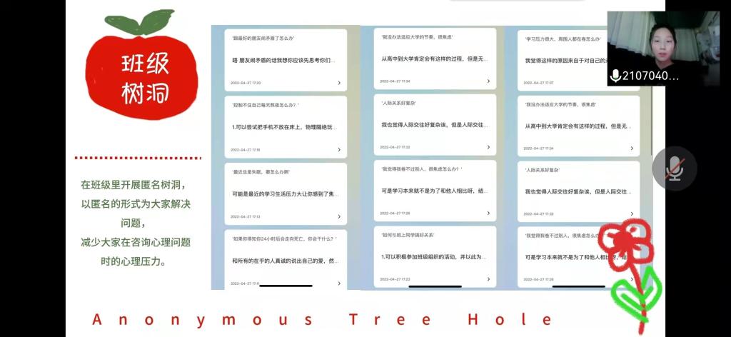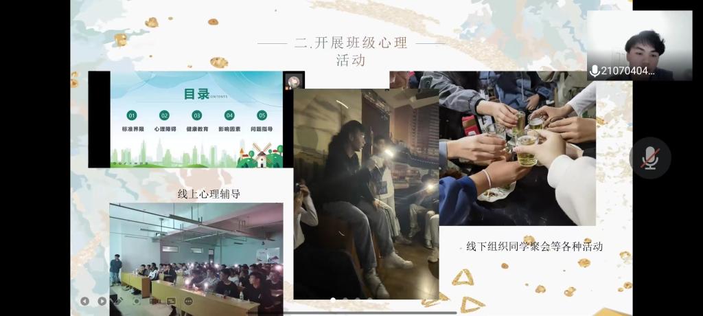 团委实践部主办的“心灵使者评选”活动在腾讯会议举行,本次活动旨在为各班心理委员提供一个平台,回望、总结、展示过去一年中的工作,并为下一个年度的工作找好方向。其中,参加本次会议的有魏春燕老师,黑料网