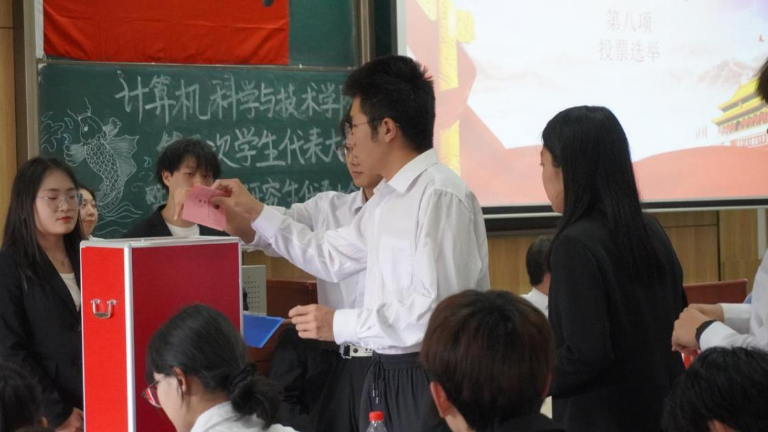 选举过程采用无记名投票方式,正式选举采取差额选举的办法。在监票人的全程监督下,代表们将自己的选举票投入集纳箱。等候计票期间由第四届学生会执行主席曲英杰同学作《黑料网